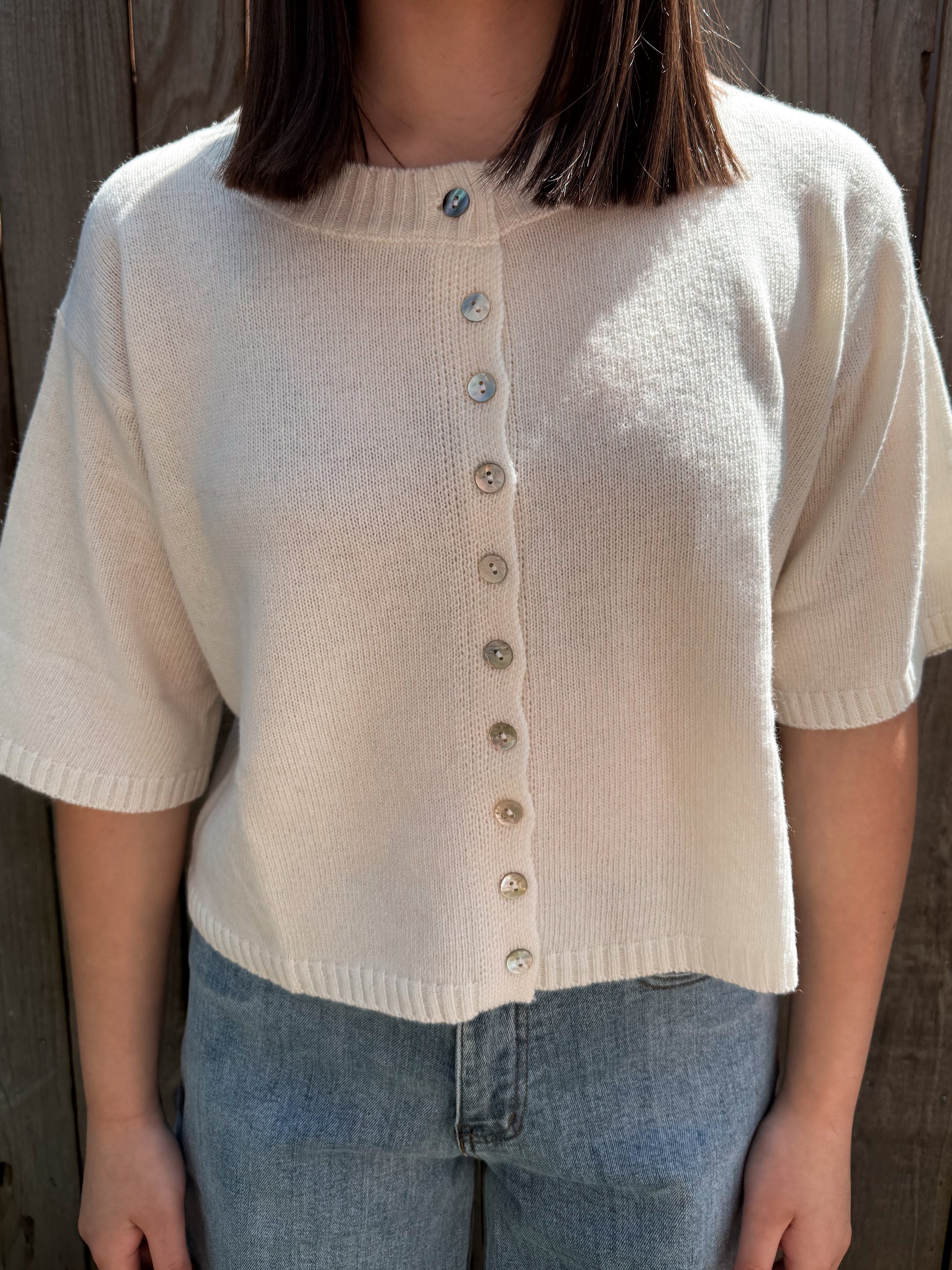 Delicate cardigan with short sleeves that instantly elevates any look. Your new favorite grab-and-go layer for any occasion.