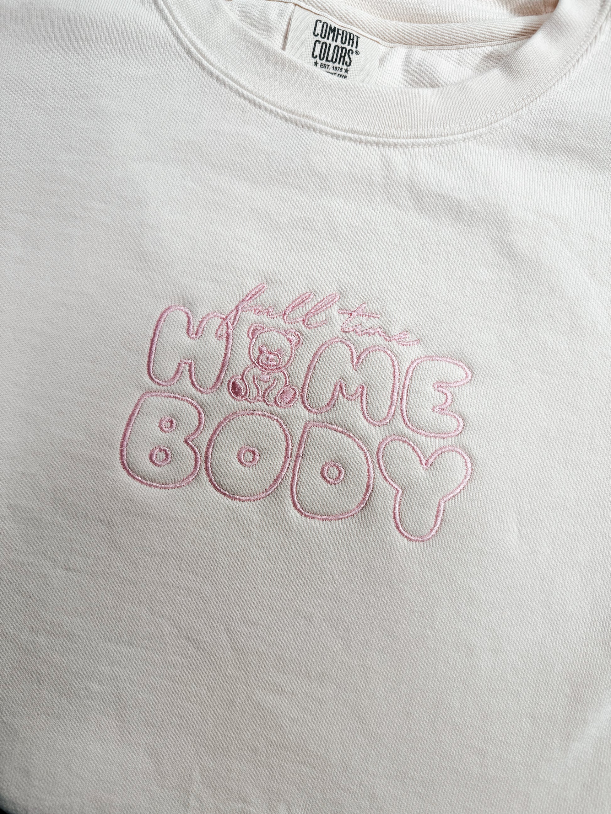 Comfort Colors crewneck with embroidered detailing in baby pink. Design is hand drawn by me so this piece is extra special to me.